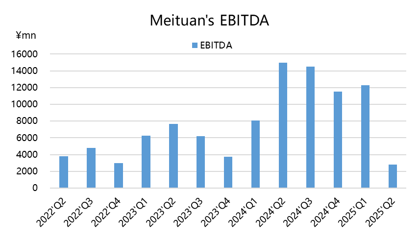 Adjusted net profit came in at just 1.49 billion yuan, significantly below market expectations of 9.85 billion yuan. Of course, market forecasts were neither precise nor fully updated, and Meituan's profit margins have historically been highly volatile. The subsidy war drove soaring customer acquisition and retention costs, with marketing expenses surging 51.8% year-over-year to RMB 22.5 billion. This represented a significant increase in the percentage of revenue allocated to marketing, rising from 18.0% to 24.5%. Profitability has nearly "hit rock bottom," proving far worse than anticipated. This extreme underperformance reflects the core profit model being severely impacted.