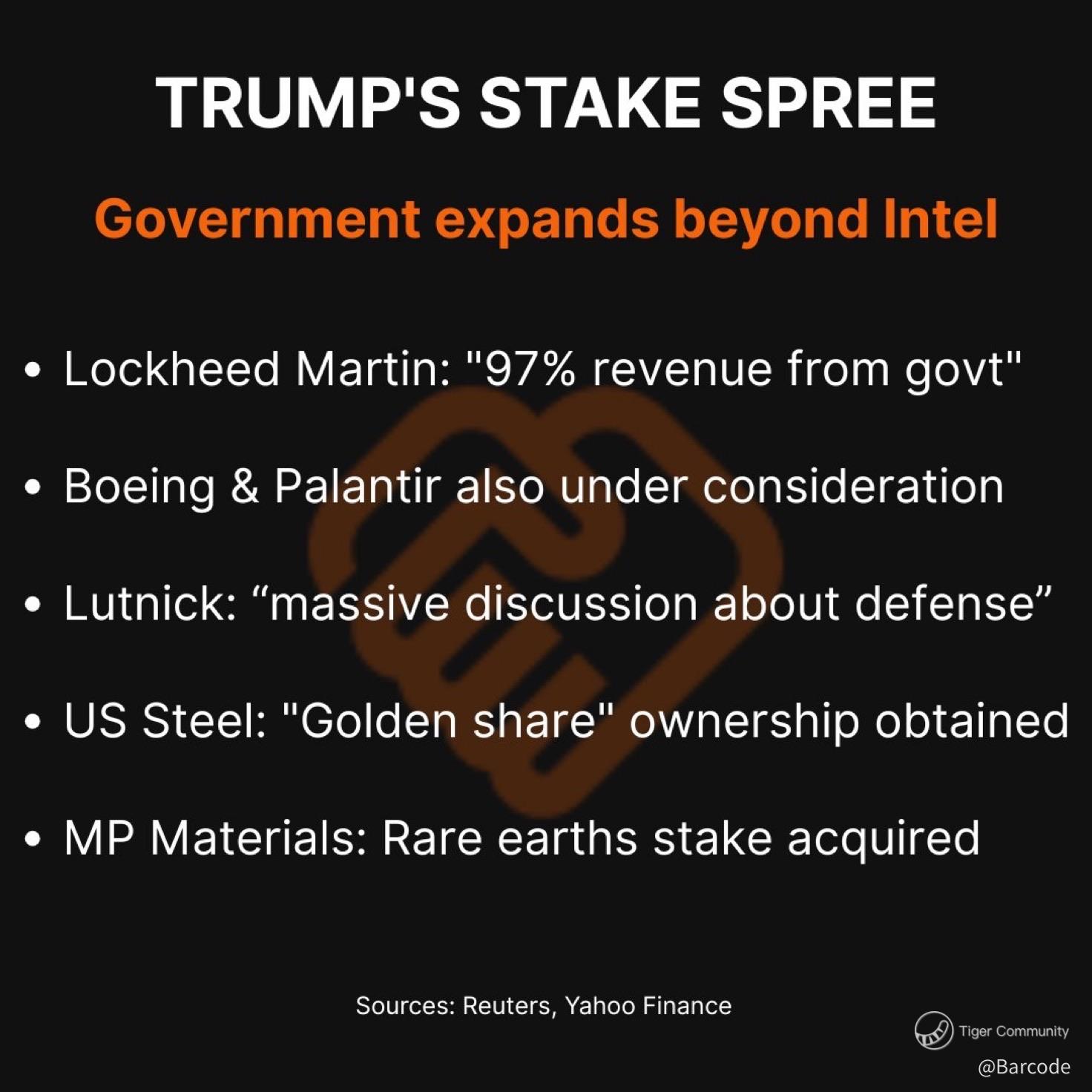 The macro catalyst changes the narrative. Commerce Secretary Lutnick confirmed Trump is considering U.S. stakes in defense contractors: Lockheed, Boeing, and Palantir. That headline flipped Palantir from -1% to +2.4% intraday. If Washington formalizes ownership, Palantir isn’t just an AI software firm anymore—it becomes a strategic sovereign asset. That enhances revenue durability but also raises political risk.