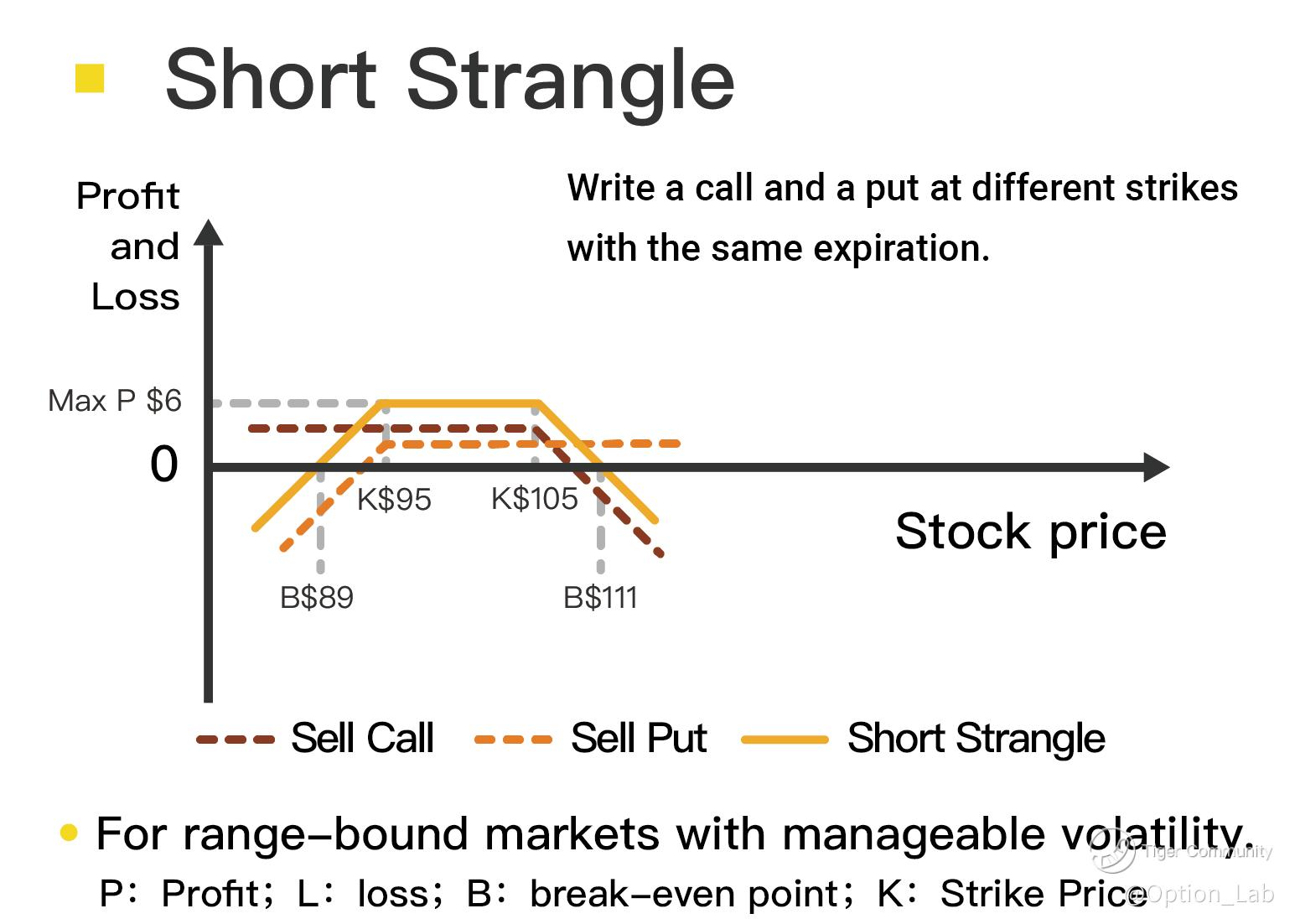 Short Strangle: Sell a call and a put at different strike prices on the same expiration date.