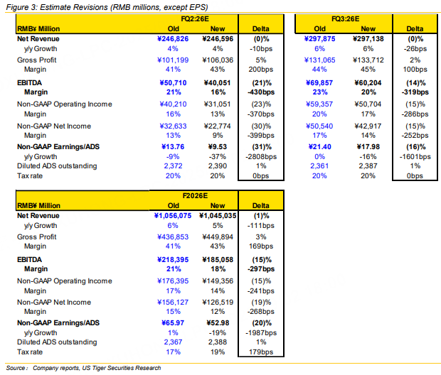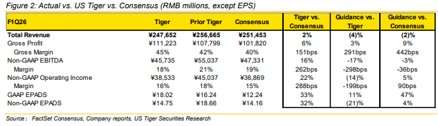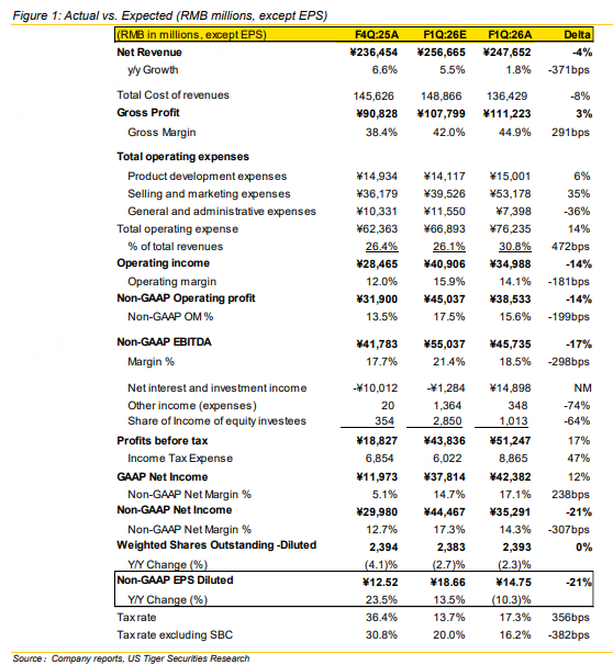 We are maintaining our BUY rating and $145 PT after Alibaba reported June quarter FY2026 results that showed a solid print despite headline profit softness, as the company’s heavy investments in quick commerce weighed on margins.