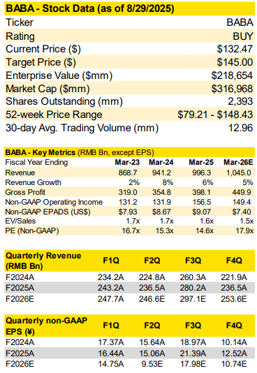 Alibaba Group: Maintain BUY and $145 Price Target