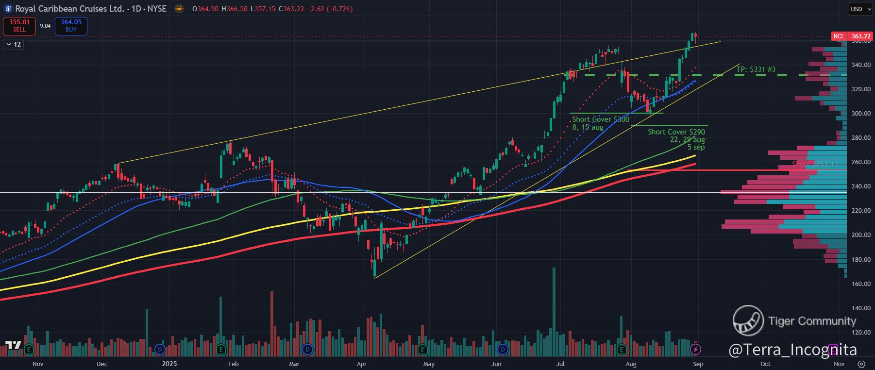 • Take loss if RCL breached $350 (done)