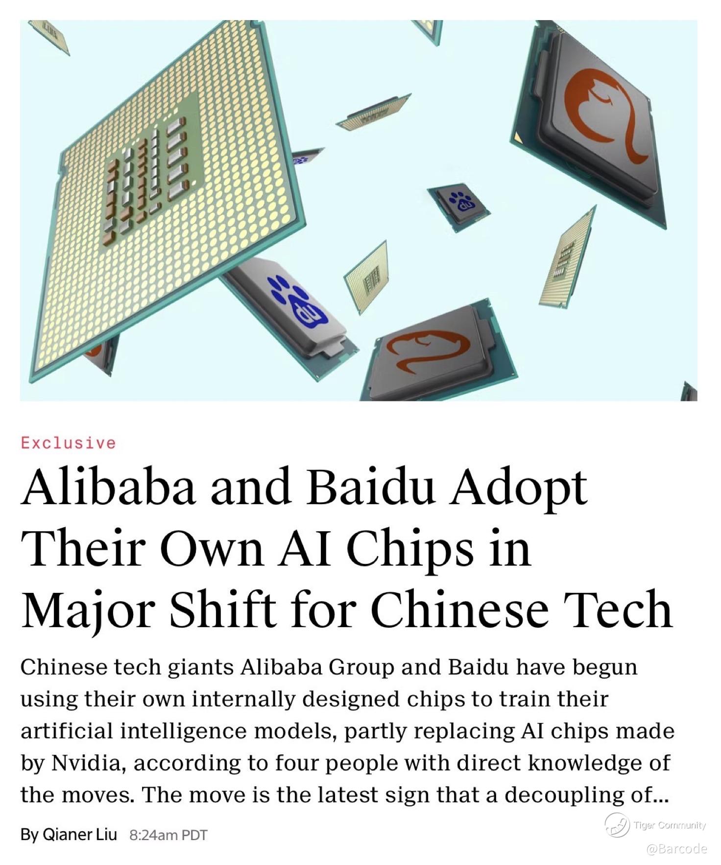 On 11Sep25, Reuters reported that Alibaba and Baidu have started using internally designed chips to train their AI models, partly replacing Nvidia hardware. Alibaba has been deploying its own chips for smaller models since early this year, while Baidu is testing its Kunlun P800 chip on new versions of its Ernie AI model.