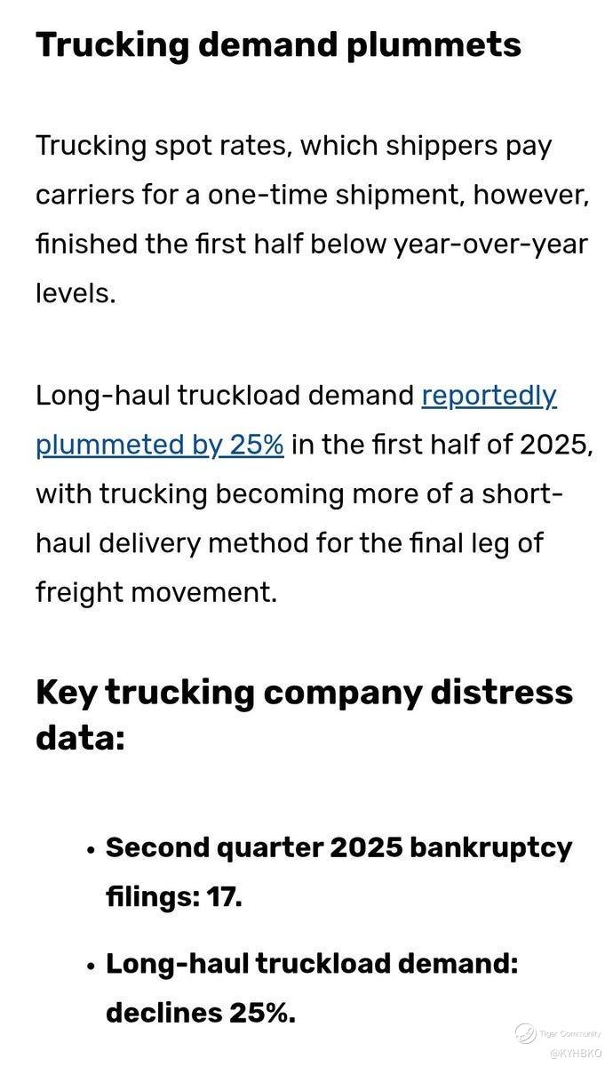 At least 17 trucking and logistics companies filed for bankruptcy in the second quarter of 2025 alone. Dry van truckload contract rates were flat from the same period a year ago, FreightWaves reported. - The Street