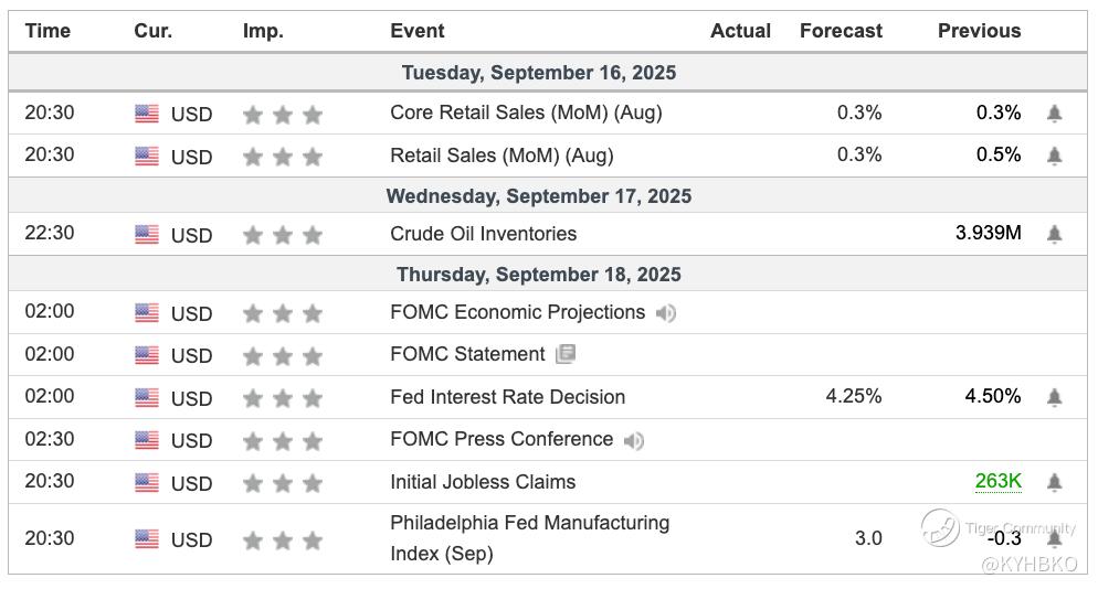 Economic Calendar: Key Market Movers (week of 15Sep25)