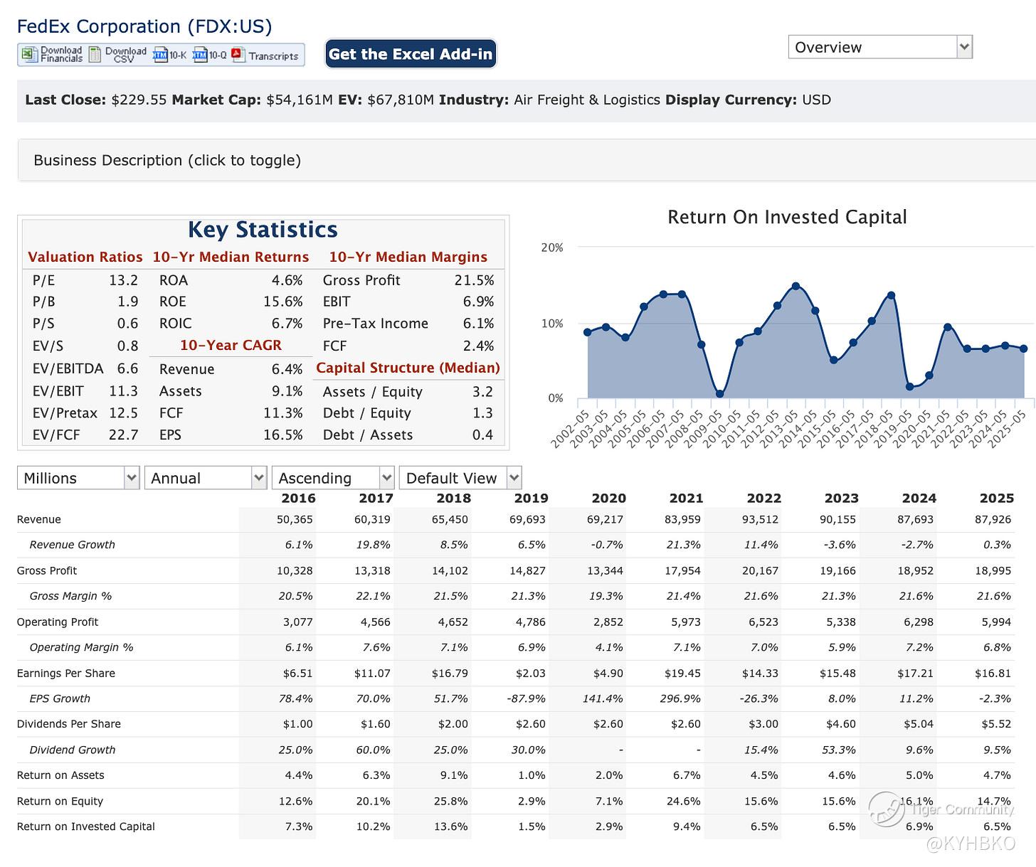 Valuation & Margins: The company's Price-to-Earnings (P/E) ratio is 13.2, which is considered attractive. FedEx has also maintained a gross profit margin of 21.5% and a 10-year median free cash flow margin of 2.4%.