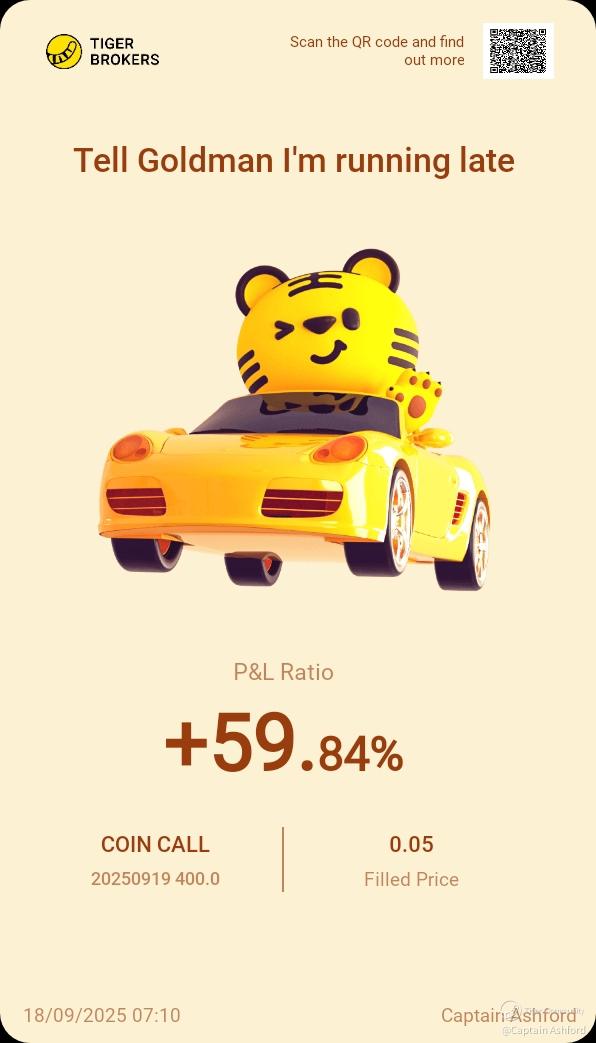 $COIN 20250919 400.0 CALL$ Picked up some pennies in front of the steam roller