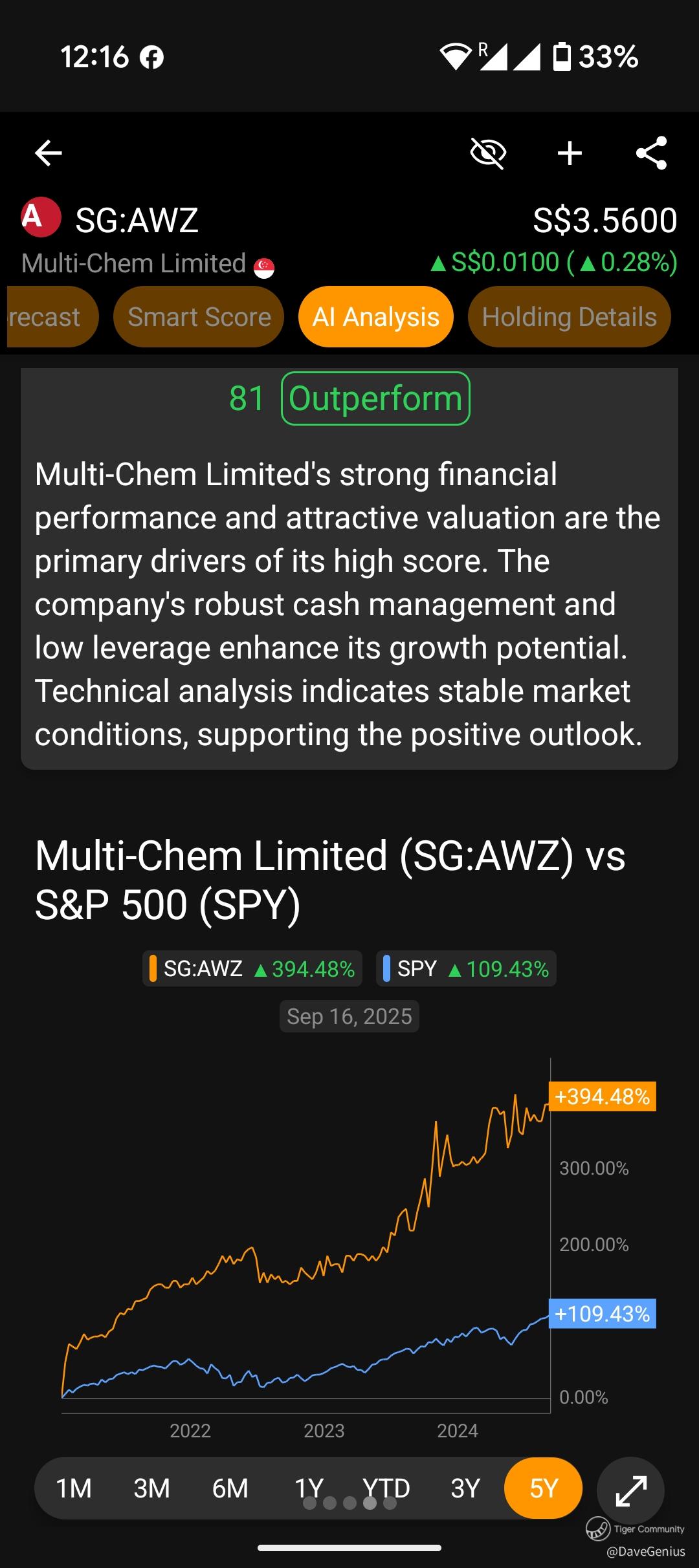 $Multi-Chem(AWZ.SI)$ This stock is one of the most underrated on the Singapore Exchange. The current dividend yield is over 7% and the company has a flawless balance sheet. They should change their name from multi-chem to multi-bagger 😉
