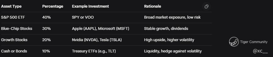 Here’s a suggested allocation for a $50,000 portfolio in 2025: