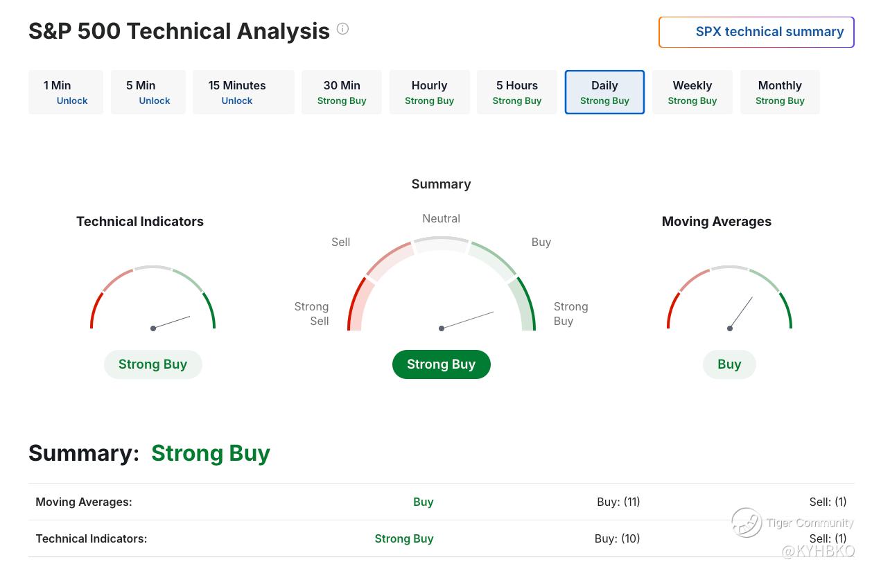 Using the technical analysis provided by investing dot com, the S&P 500 has a strong recommendation based on the daily interval. 21 indicators are showing a “Buy” rating, and 2 are showing a “Sell” rating.