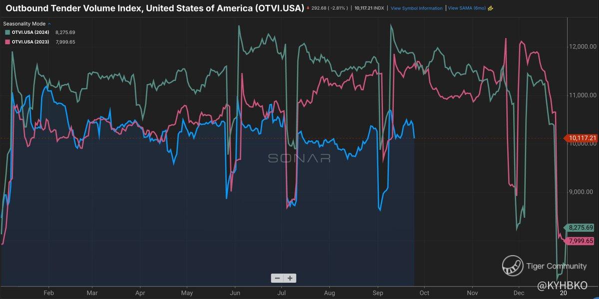 We can see the activity of the goods economy by looking at freight transactions. After all, companies don’t move freight unless there is demand on the other end. This is a chart of the US domestic freight market. The goods economy is in real trouble. Domestic freight transactions are down 12% YoY. - X user Craig Fuller