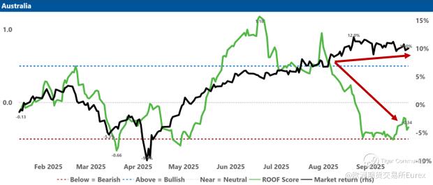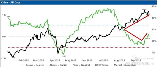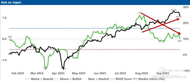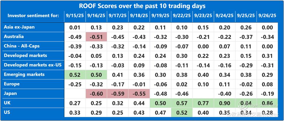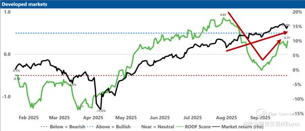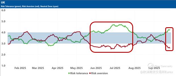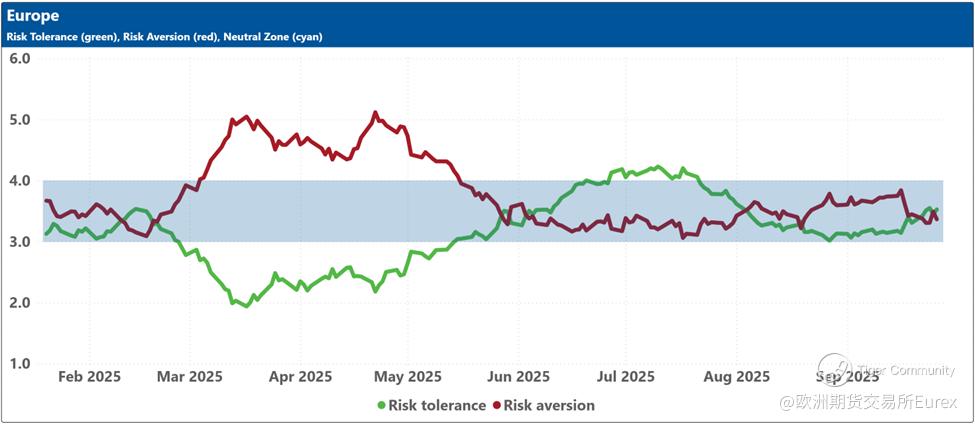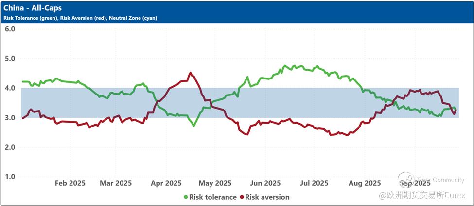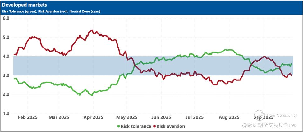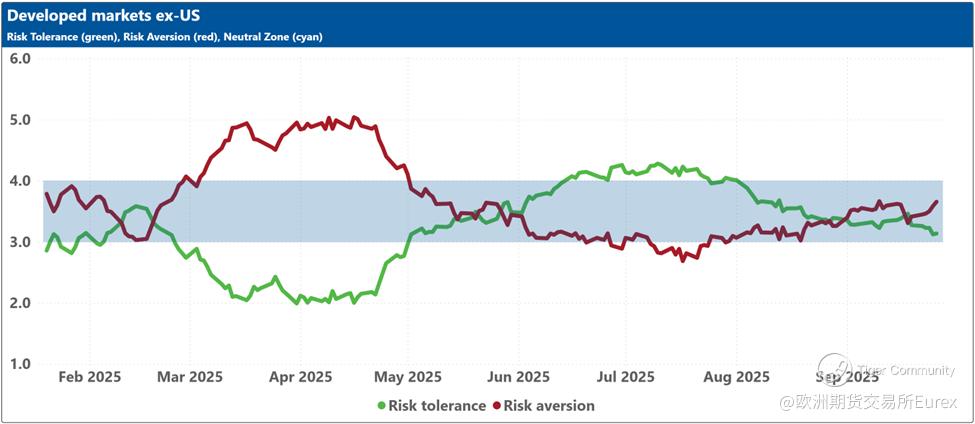 Resilient market returns have sparked a sentiment recovery in six of the markets we track — China, Global Developed, Europe, Japan, the UK, and the US — narrowing the gap between market performance and investor sentiment that had widened since early August. In contrast, sentiment remains out of sync with market performance in four other regions: Asia ex-Japan, Australia, Global Developed ex-US, and Global Emerging Markets. Notably, except for the UK, the sentiment rebound was driven more by a decline in risk aversion than by an increase in risk tolerance. This means investors in those markets feel less urgency to protect against downside risk, but that sense of security hasn’t yet translated into a greater willingness to take on risk. As for the four markets where sentiment and performance remain misaligned, investors may still be waiting for stronger reassurance before adjusting their outlook.