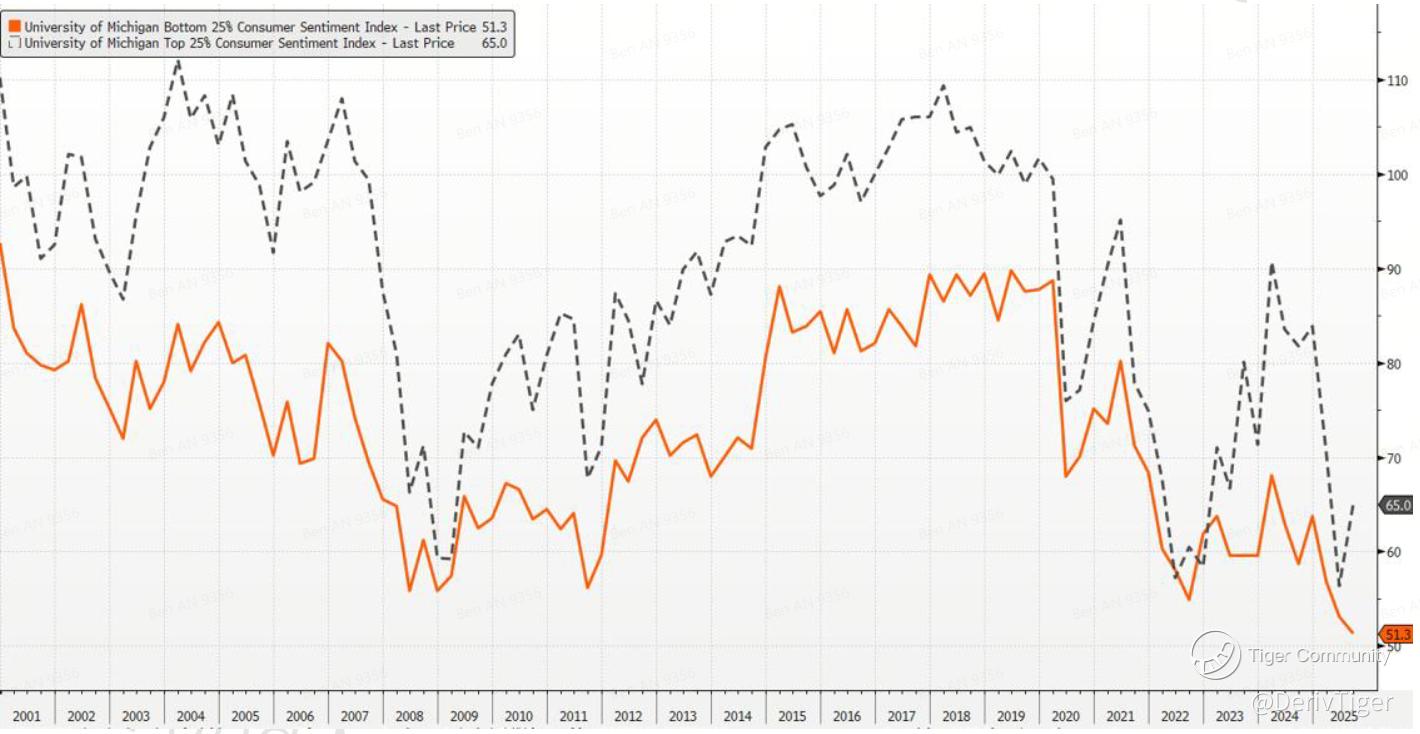 Overall, the U.S. economy continues to demonstrate resilience. Signs of labor market cooling have so far had limited impact on demand thanks to cushioning from the rate-cut cycle. Despite concerns over liquidity conditions, the “Goldilocks” narrative remains largely intact. That said, consumption patterns show structural vulnerabilities: roughly 65% of incremental Q2 consumption came from high-income households’ wealth effect, while the University of Michigan survey shows low-income household confidence has fallen to its second-lowest level this century, casting doubts on the sustainability of consumption in the medium term.