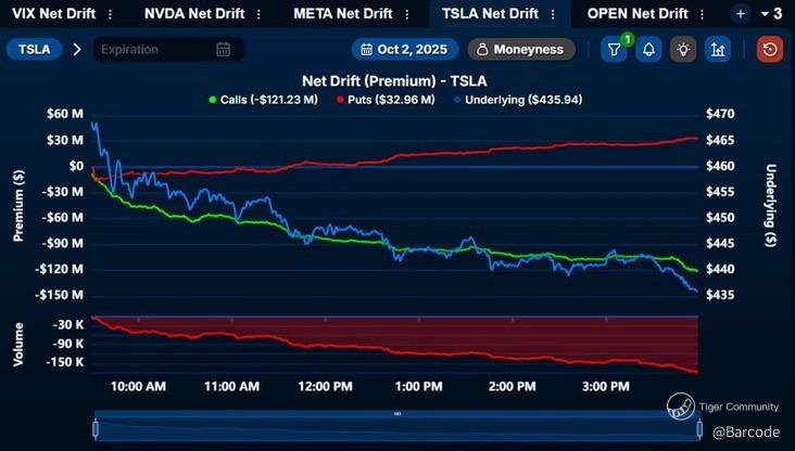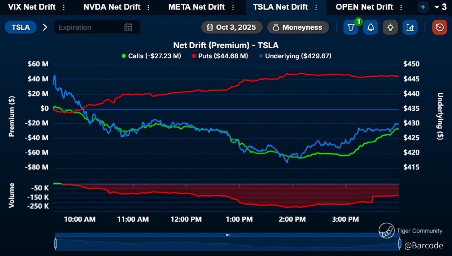 ๐ด Puts quietly accumulated $44.68M on Oct 3 while price bounced from $418 to $430.