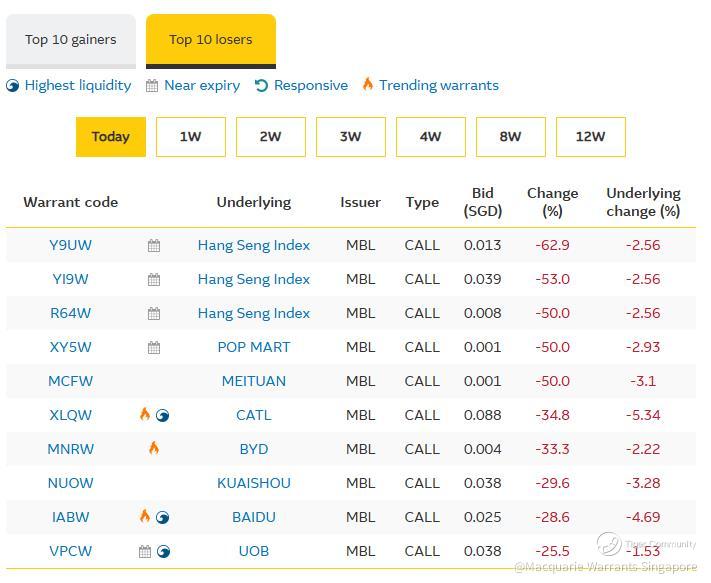 ✳HSI call warrants on the other hand, populate the top losers table, losing 50% to 63% of its warrant value.