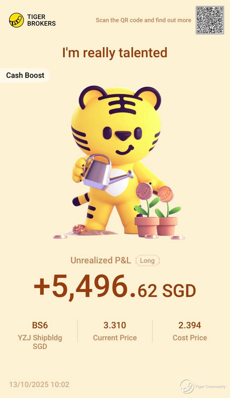$YZJ Shipbldg SGD(BS6.SI)$ ’s been holding up well after a solid rally. Some short-term pullback, but the uptrend’s still intact. Locked in a nice gain this round — staying optimistic about the shipbuilding rebound ahead!