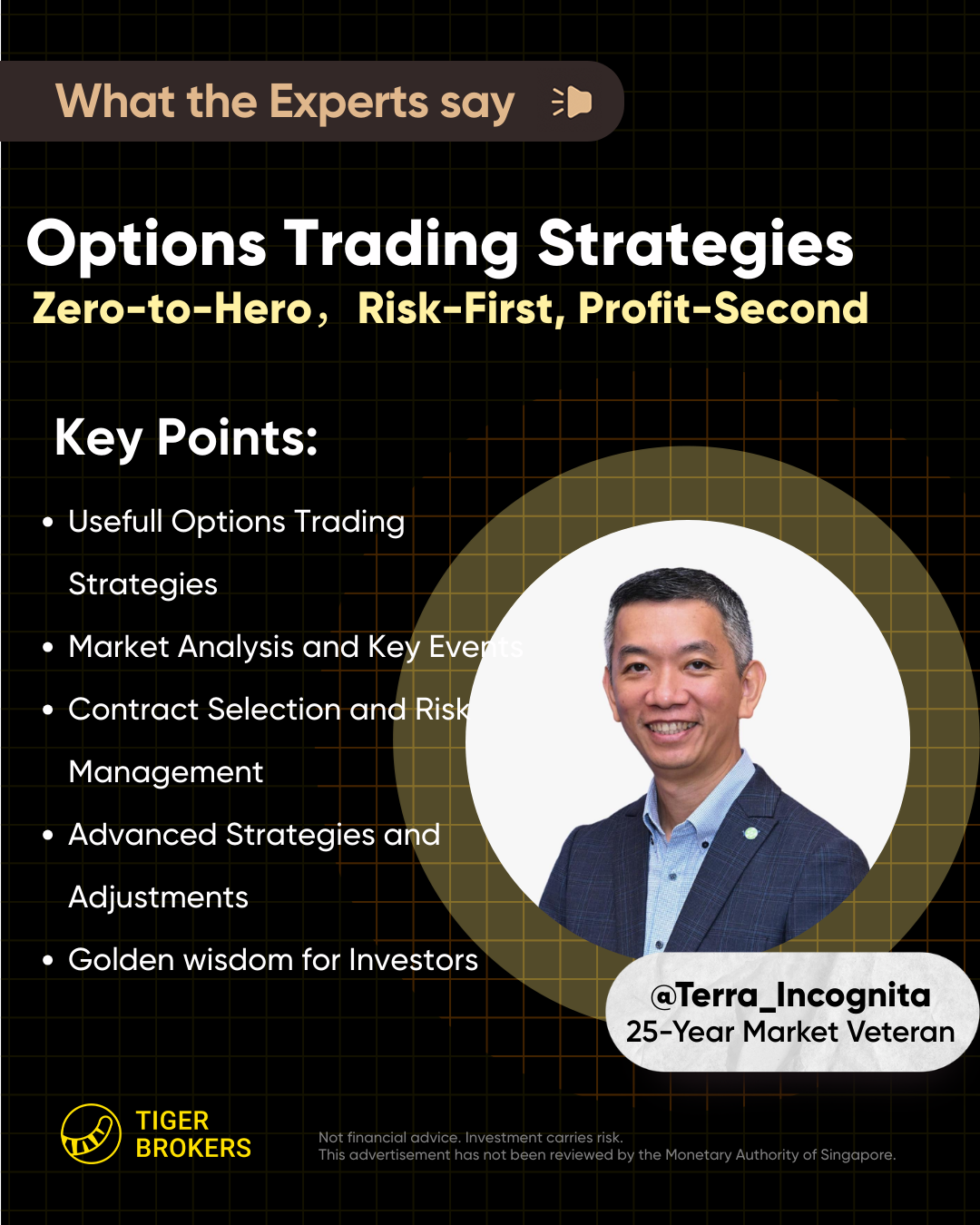 @Terra_Incognita , an experienced trader on Tiger Brokers, did another online session on options trading.He shared his trading experience, introduced four beginner-friendly strategies, analyzed the current market situation, and provided guidance on contract selection, position sizing, and exit plans. The session also emphasized the importance of risk management, consistent trading, and continuous learning.