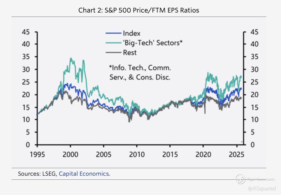 Many people, and even OpenAI CEO Sam Altman himself, might acknowledged that investors were getting "overexcited about AI" and drew parallels with the dot-com bubble. Year-ahead earnings forecasts for S&P500 companies - forward 12-month (FTM) earnings per share (EPS) - are rising and underpin the stock market rally. Meanwhile, the ratio of stock prices to earnings estimates has barely increased, edging up to roughly 22.6 from about 22.3 at the start of the year. In fact, the ratio for Big Tech stocks, which have been driving the market surge, has actually dipped marginally.