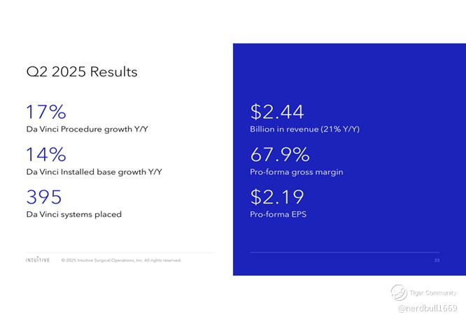 Procedure Growth: Worldwide da Vinci procedure volume grew by approximately 17% compared to Q2 2024, demonstrating continued clinical adoption.