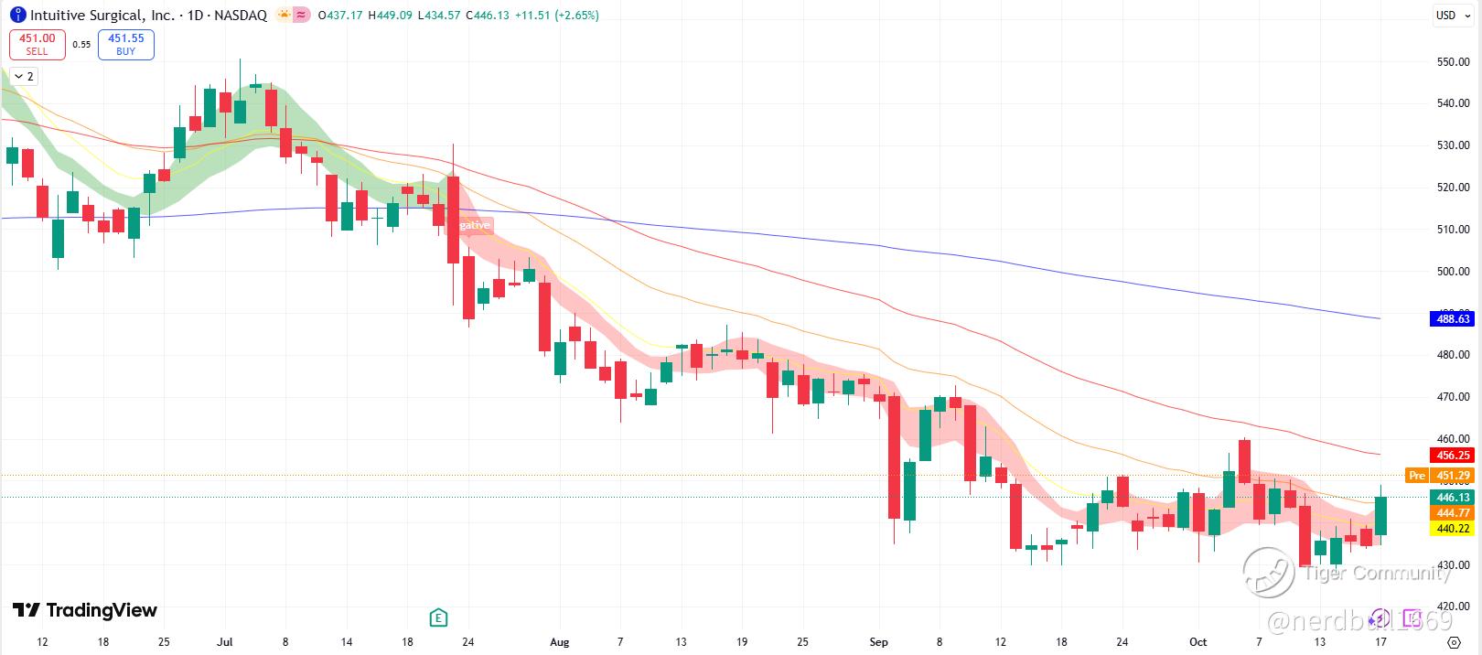 - Valerie Archibald·10-20ISRG management tends to give conservative guidance, partly due to its higher PE ratio. I think tariff effects will show in the next earnings, and a drop toward 400–380 could trigger capitulation and provide a great buying opportunity nonetheless.LikeReport