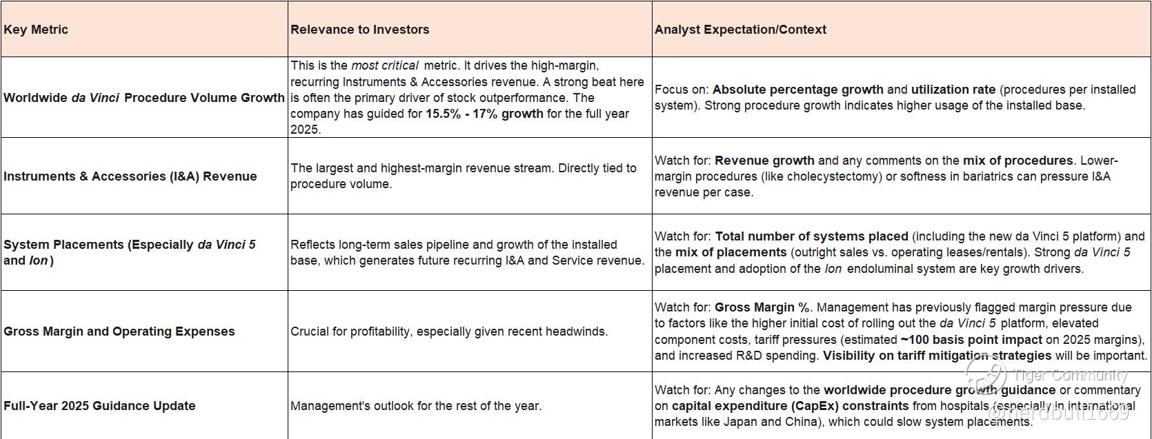Bullish Scenario (Potential Long Trade): A significant beat on procedure volume growth (e.g., above the high end of their 17% guidance) and stable/better-than-expected gross margins would likely drive a strong rally. Positive commentary on the da Vinci 5 or Ion platform adoption could also fuel a move higher.