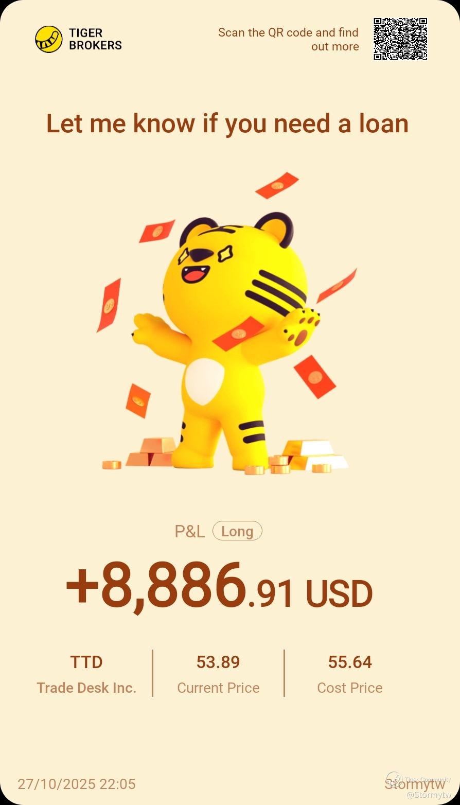 $Trade Desk Inc.(TTD)$ current price 53 but likely to exceed and gain profit soon. Monitoring next earnings closely