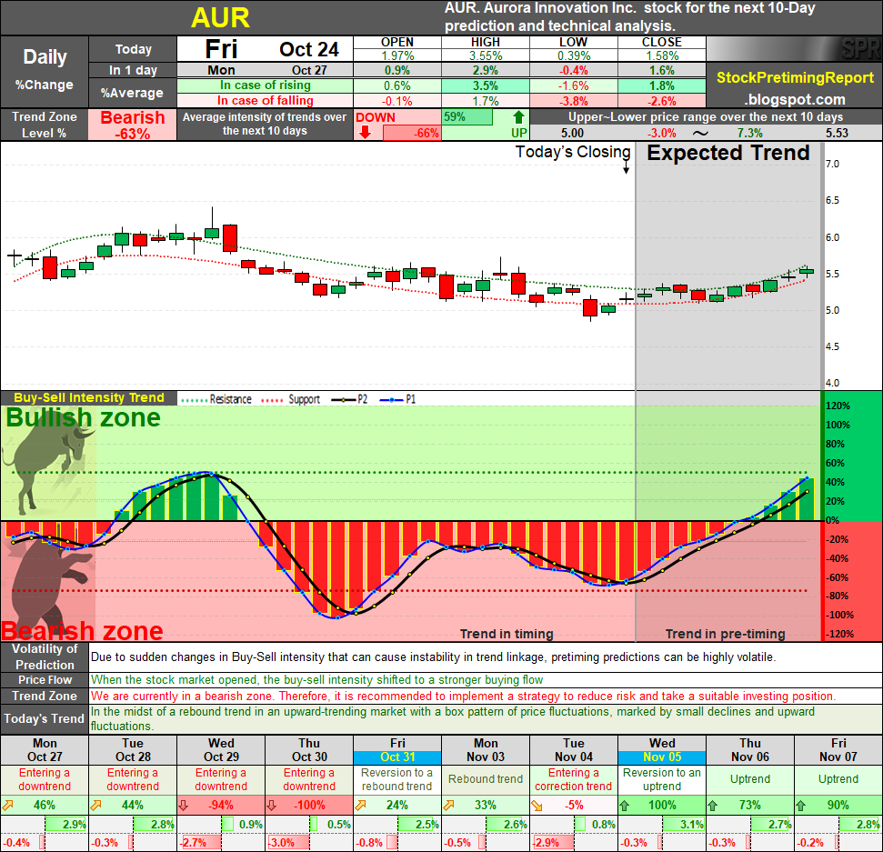 Forecast indicators suggest that AUR may experience an ascending rectangle formation over the next 10 days — implying narrow-range trading with intermittent upward tests.