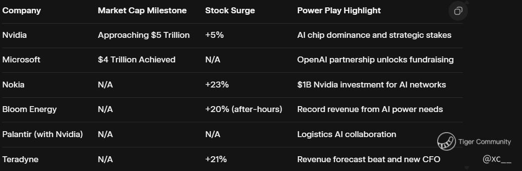 $NVIDIA(NVDA)$ $Microsoft(MSFT)$ $Nokia Corp.(NOKBF)$ $Bloom Energy Corp(BE)$ $Palantir Technologies Inc.(PLTR)$