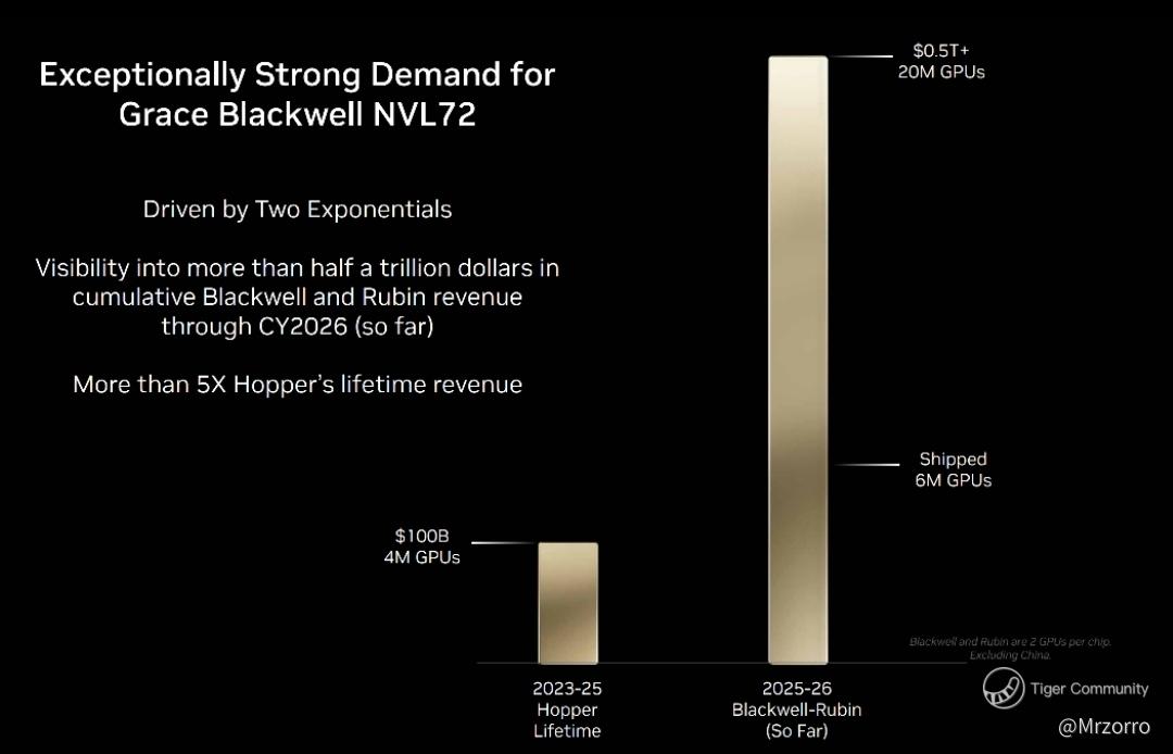 $NVIDIA(NVDA)$   CEO Jensen Huang's keynote at the recent GTC DC conference stunned the market, driving a surge in the company's stock. The most critical slide, and the direct catalyst, was the guidance for Nvidia's AI chip demand.