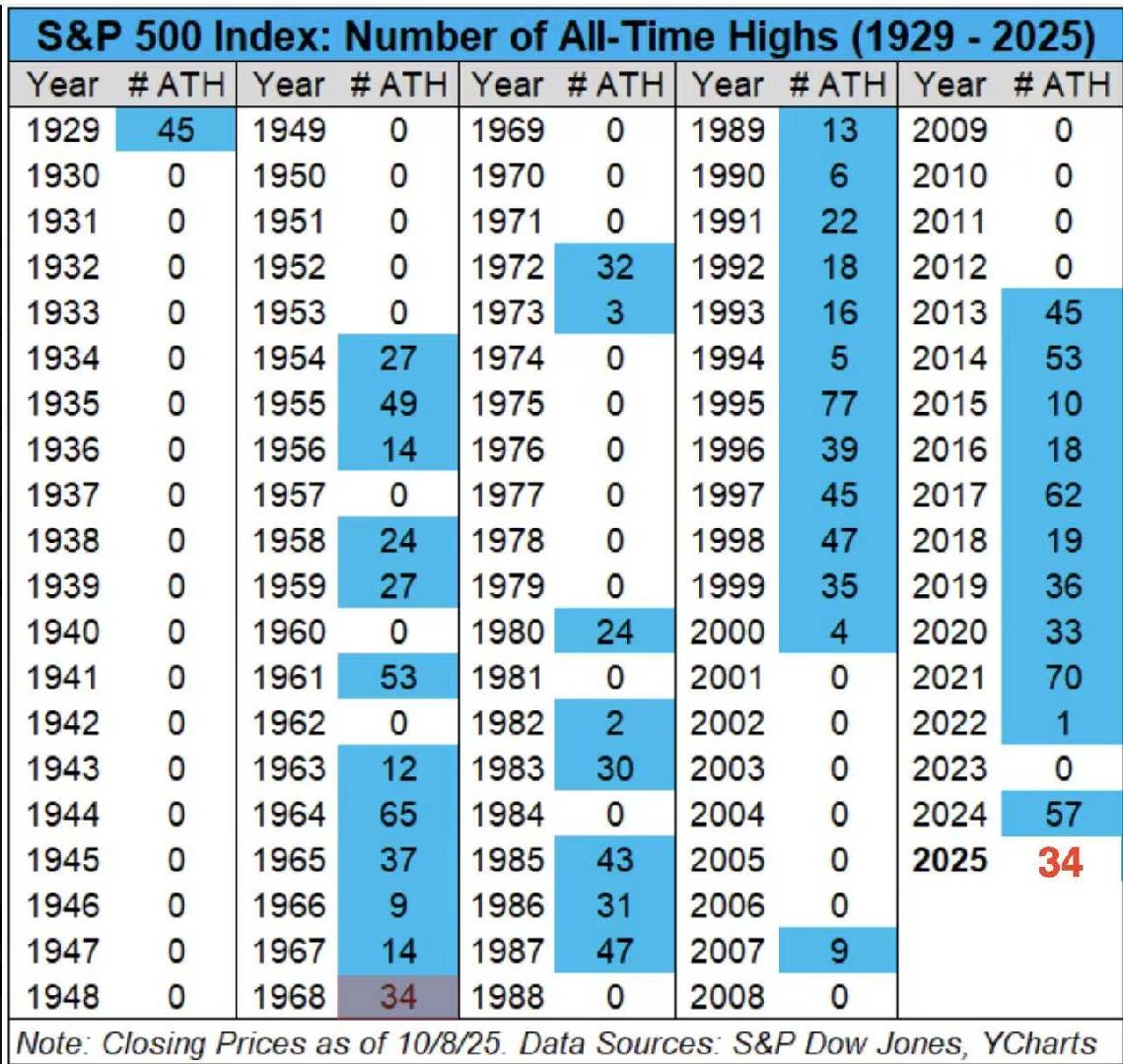 Chart 2: 2024 has already notched 57 all-time highs for the $S&P 500(.SPX)$ , the third-most on record, and 2025 is projected to add another 34 ATHs—highlighting the relentless breadth of this bull market.