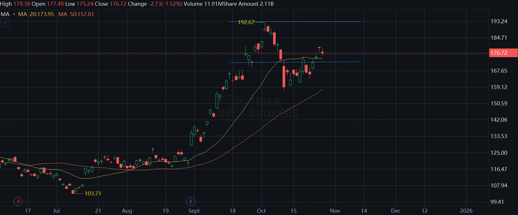 Data Source: Yahoo Finance & TradingView (daily chart, Oct 29, 2025). Prepared by Tiger Morning Brief | For internal use only.