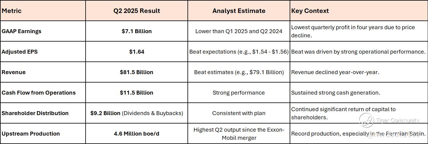 Exxon Mobil reported strong Q2 2025 results that beat Wall Street's earnings-per-share (EPS) estimates, demonstrating resilience despite a decline in global crude oil prices during the quarter.