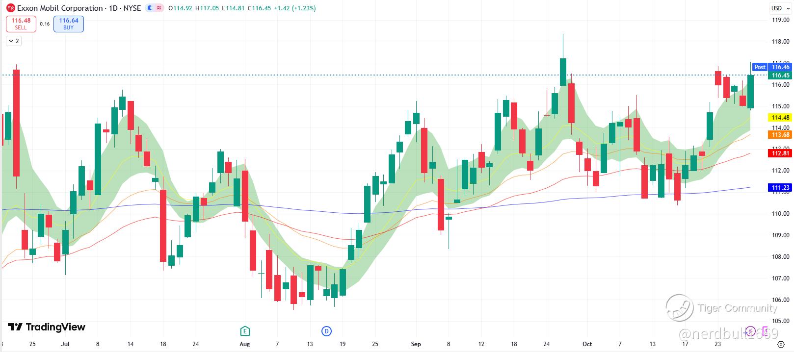 Looks like XOM have been trading sideway after making a new high, and we could see investors waiting to see how the company outlook would be showing in its earnings call, and also investors would be looking closely on its refining and also the impact of weaker crude oil prices.