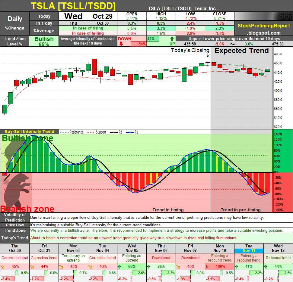 Short-term analysis indicates that TSLA has entered a maturing bullish phase, with momentum starting to fade. The trend is expected to shift toward a Correction Trend, characterized by slowing upward movement and short bursts of downward fluctuation.