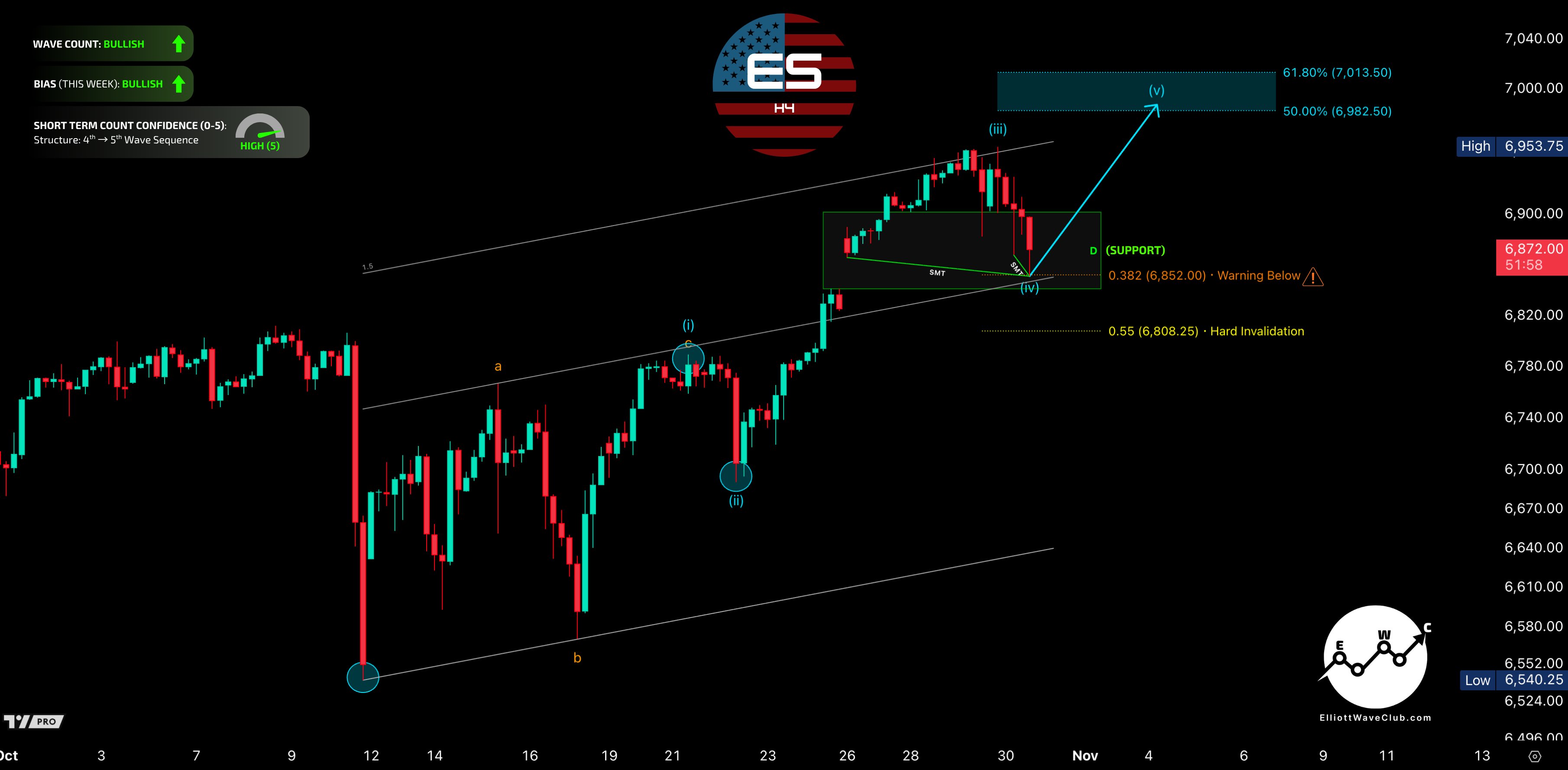 Therefore, lean is the 4th wave completed at close ✅, setting up for a 5th-wave rally toward 6950 🎯