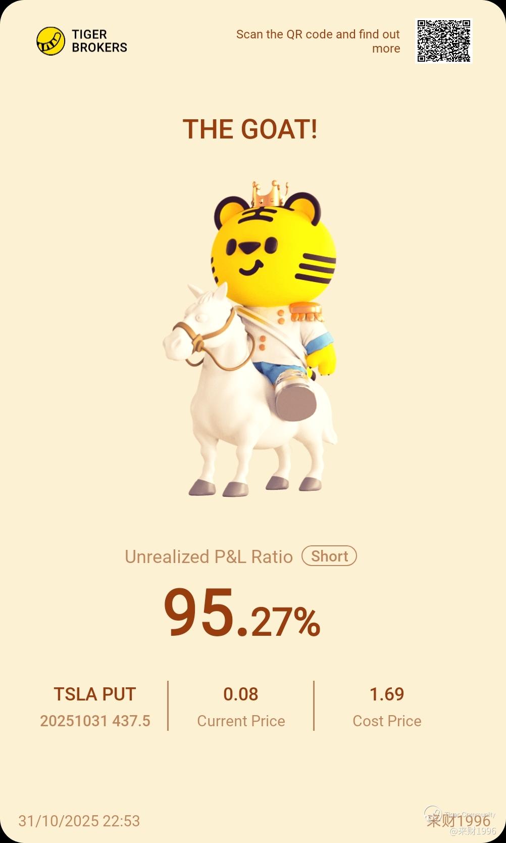 $TSLA 20251031 437.5 PUT$ great idea to sell puts :)