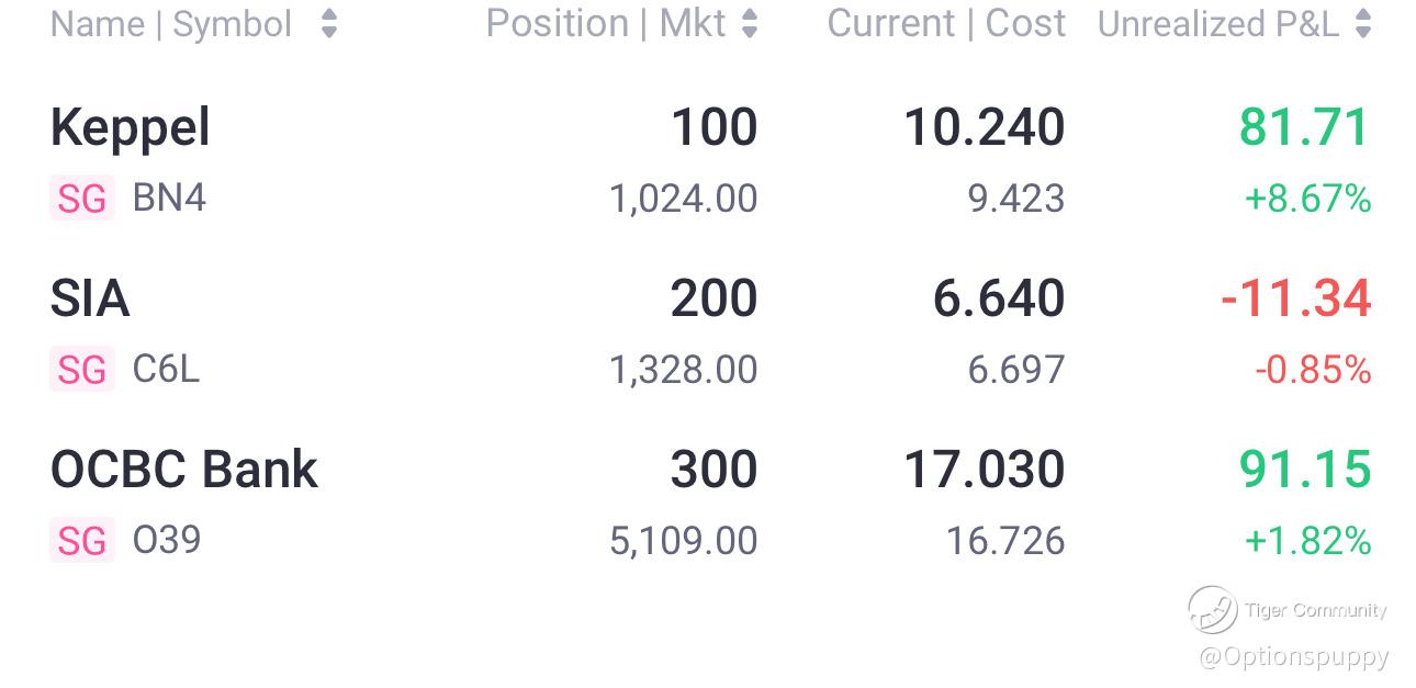 As of now, my portfolio shows an unrealized profit of S$102.52, which is a small but satisfying gain. Here’s the breakdown of individual performance: