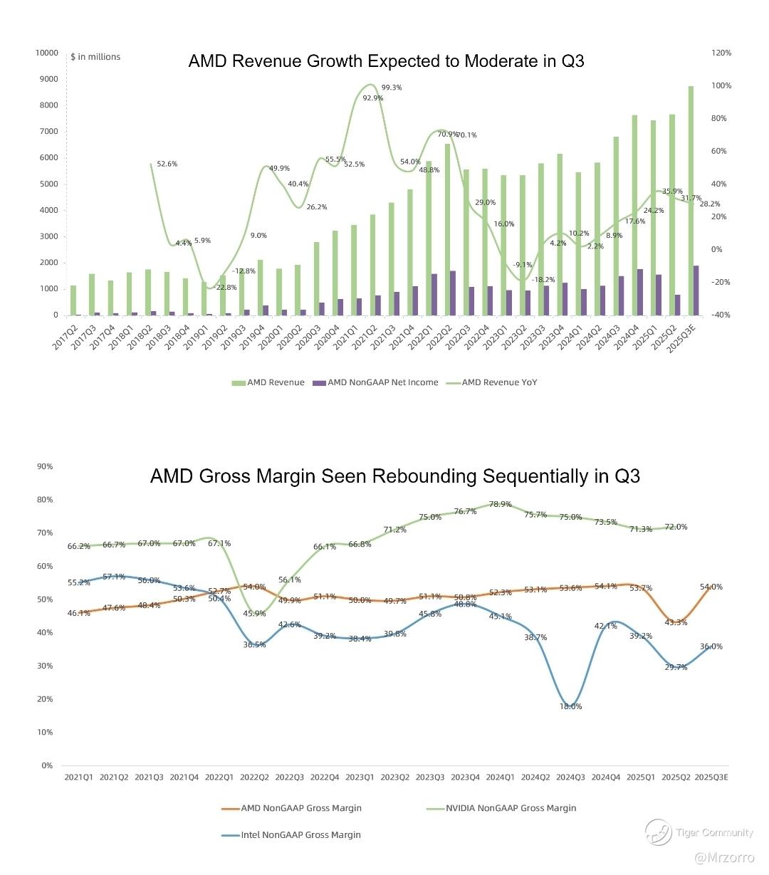 Notably, AMD completed its divestiture of ZT Systems' data center infrastructure business to $Sanmina(SANM)$ on October 27, 2025. This transaction is expected to be recognized in Q4, contributing a $190 million gain to net profit.