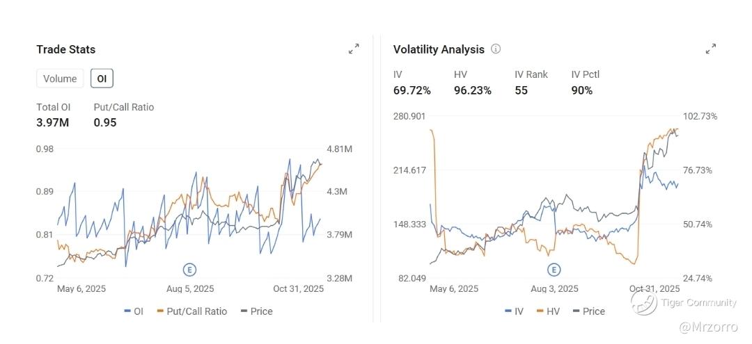 Despite this turbulent backdrop, options sentiment is not defensive. A Put/Call Ratio of 0.95 shows a constructive, slightly bullish tilt. This indicates that as the stock, volatility, and open interest have all climbed, traders have been more inclined to position for upside than to pay up for downside protection.