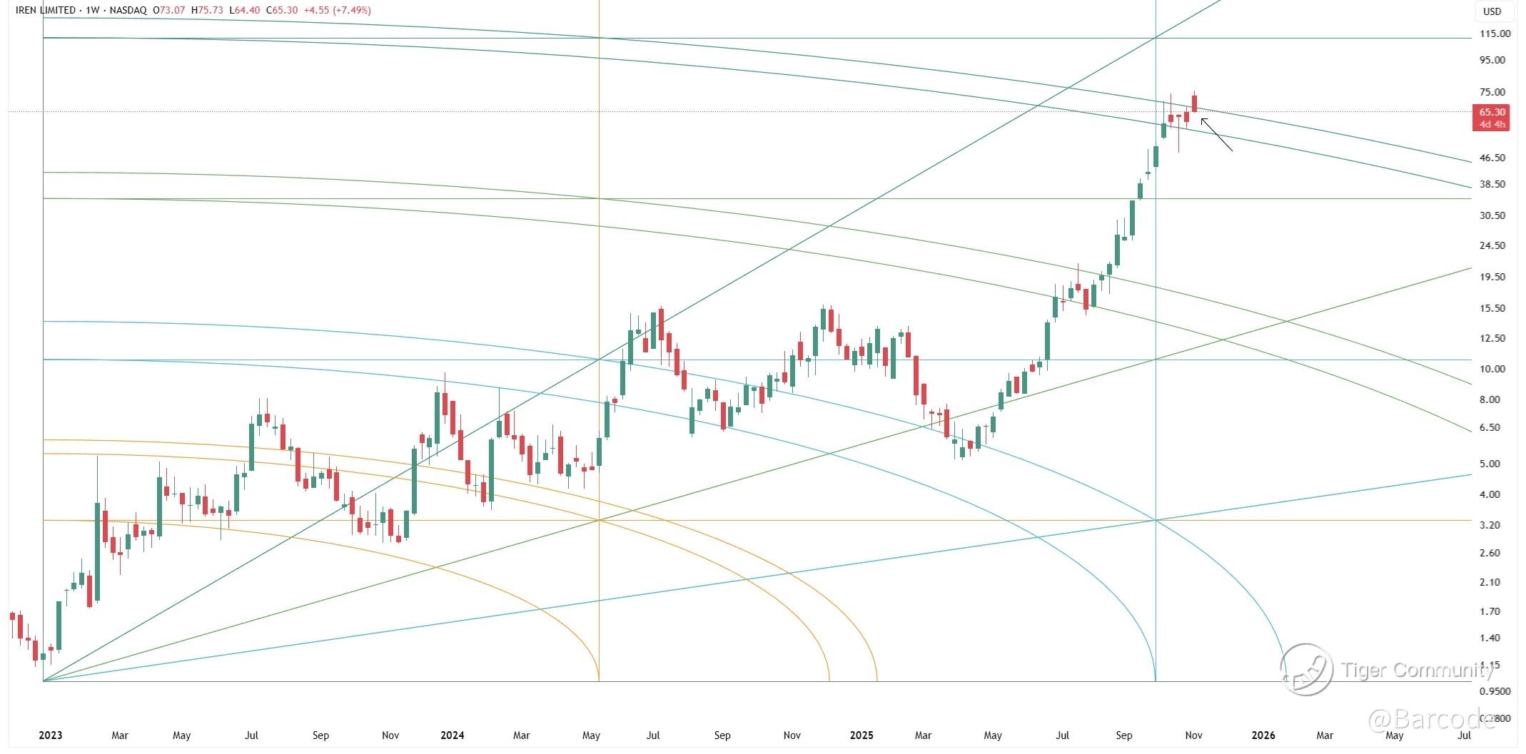 Technically, Gann arcs show a post-breakout consolidation with RSI 65 and a widening MACD histogram. Support at $52 remains firm; I’m targeting a retest of $65 then $80 as GPU installations scale. Analysts are waking up, with Cantor Fitzgerald raising its PT to $100 and B. Riley to $74, flagging Iris’s 2.75 GW Texas grid access as the ultimate AI bottleneck advantage.
