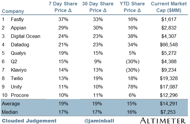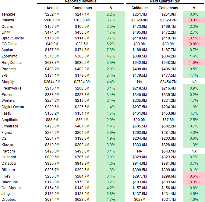 $Palantir Technologies Inc.(PLTR)$ $Shopify(SHOP)$ $8x8(EGHT)$ $Qualys(QLYS)$ $Unity Software Inc.(U)$