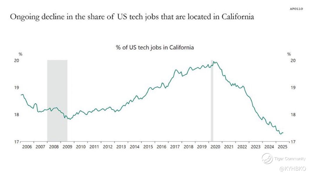 From mid-2022 to now, the Bay Area has shed 80,000 tech jobs while supposedly being at the centre of the AI revolution. San Francisco alone dropped 39,600 positions in two years, an 11% collapse. Most of these jobs got permanently deleted. Entry-level employment fell 13% relative to experienced workers across the industry, and postings for junior roles are down 35% since early 2023. - X user Stock Market News
