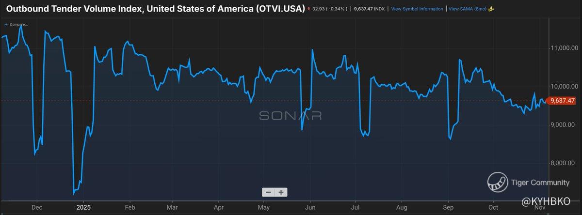 This is a high-frequency chart of the goods economy, and the index of the number of goods shipped through the US domestic economy. Down 15% YoY. - X user Craig Fuller