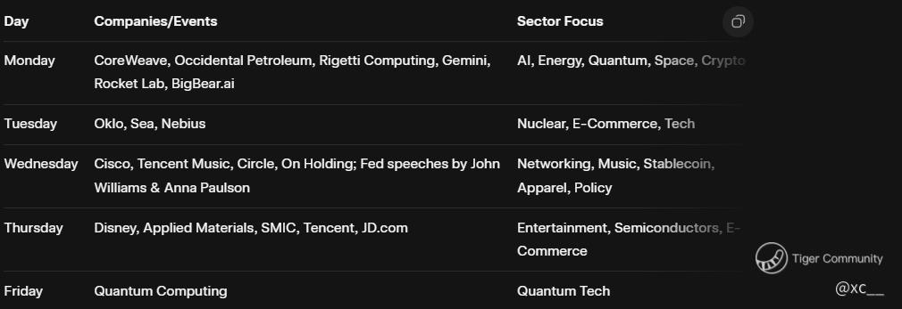 Buckle up, investors β the market's about to get wild with a flood of quarterly reports from powerhouse names in tech, energy, space, and beyond. With economic vibes still buzzing from recent Fed moves, these reveals could spark massive swings and golden opportunities. Let's break it down day by day, spotlighting why each one's a must-watch, plus potential impacts on sectors like AI, quantum tech, and global entertainment. π€π