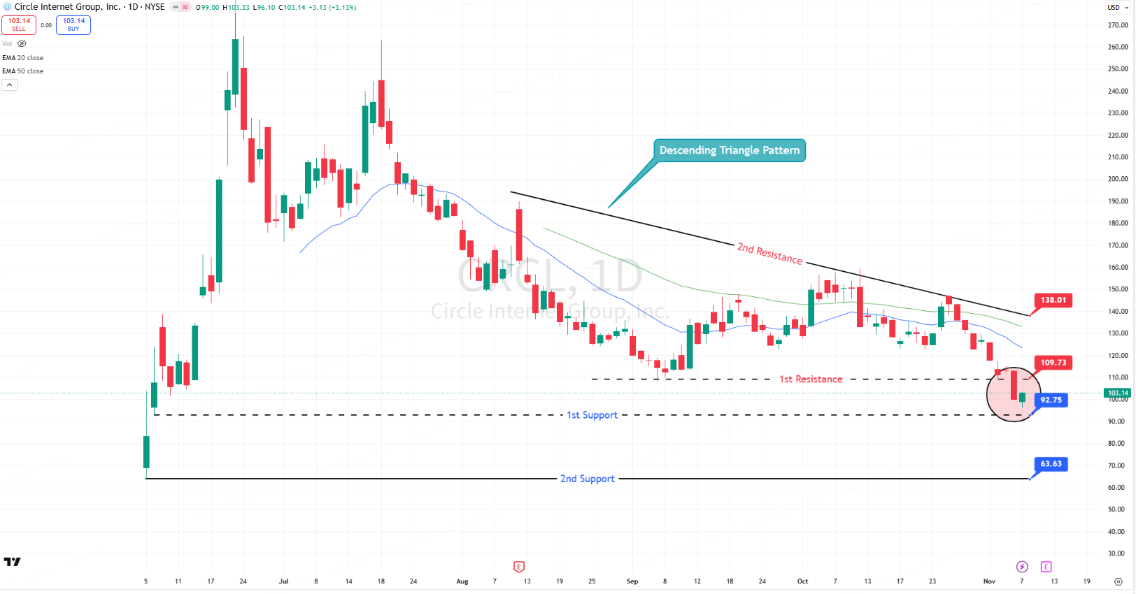 Circle Rebounds from $100 Support but Faces Heavy Resistance