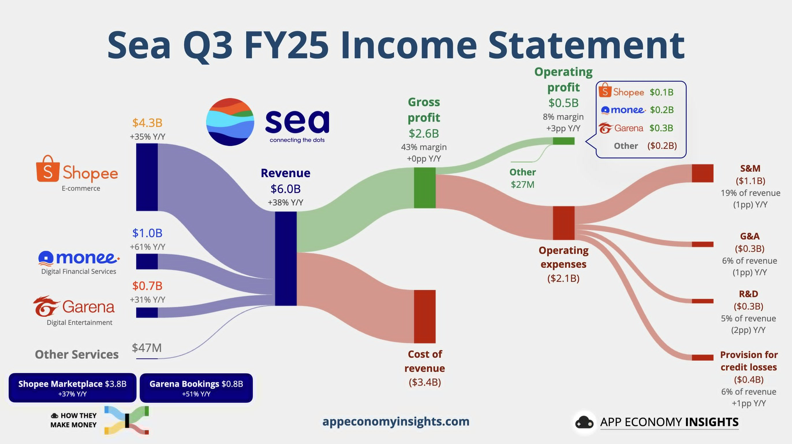 Southeast Asian tech giant $Sea Ltd(SE)$ released its third-quarter financial results for the period ending September 30, 2025, on November 11 (pre-market) Eastern Time.