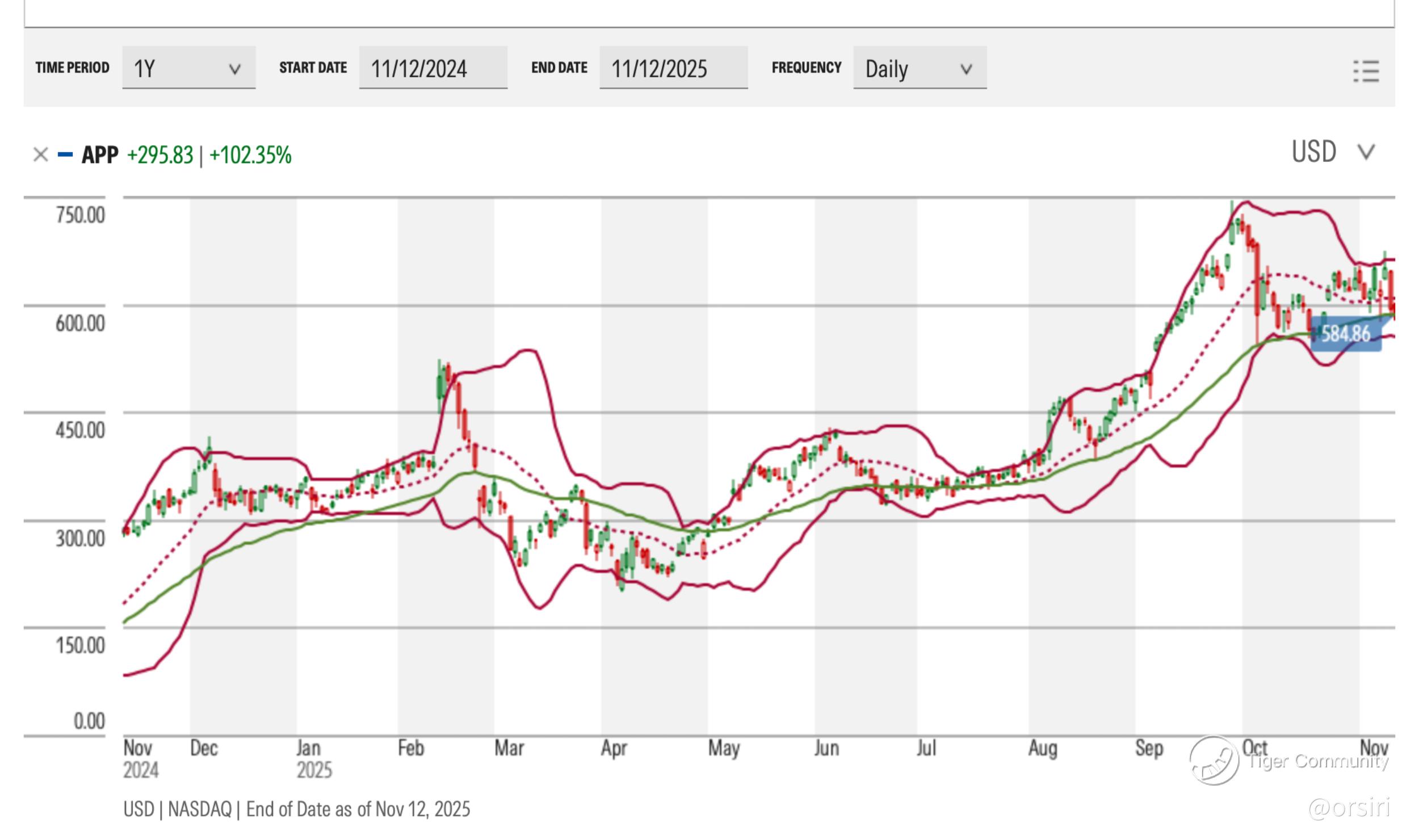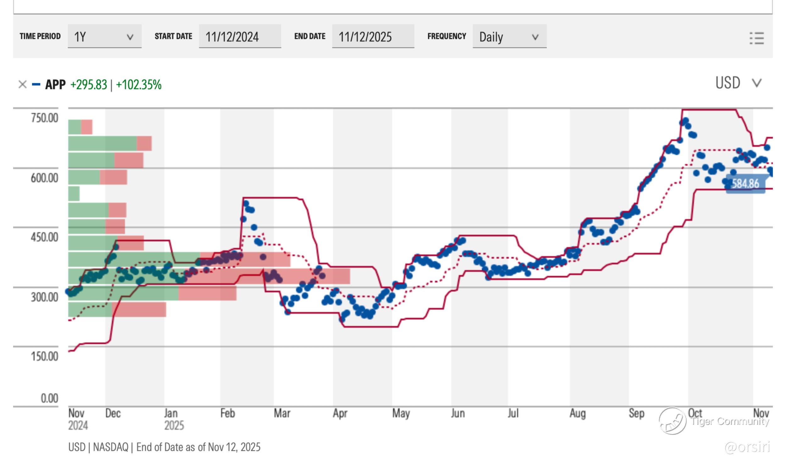Valuation underscores the challenge. A trailing P/E of 68.75 and price-to-sales ratio of 32.41 imply near-perfect execution is already priced in. Forward P/E of 42.55 is somewhat more forgiving, reflecting confidence that Axon 2.0 can sustain high margins while scaling into new verticals. These multiples suggest the market is treating $AppLovin Corporation(APP)$ less like a cyclical adtech platform and more like a high-margin software business.