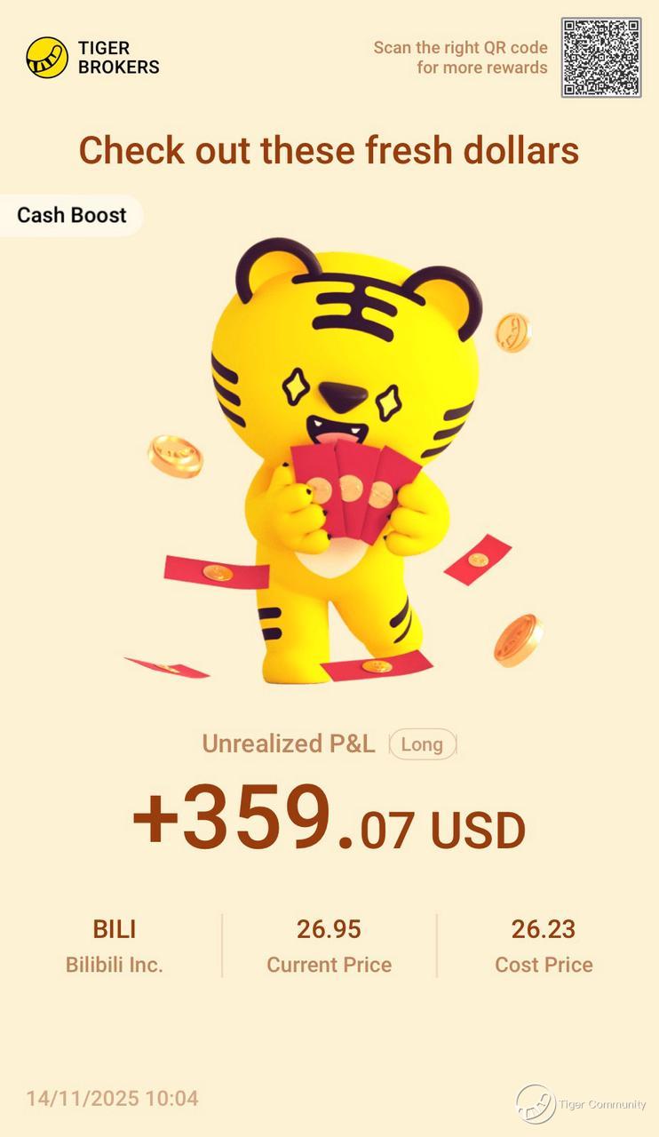 $Bilibili Inc.(BILI)$ Made a sweet little gain on BILI! Topped up my position with the Contra688 promo—free trading credits are just awesome. Bilibili's "high-quality growth" model is firing: thriving community, soaring profits/margins, plus hot new ads, AI music & games. Long way to go, holding for more gains!