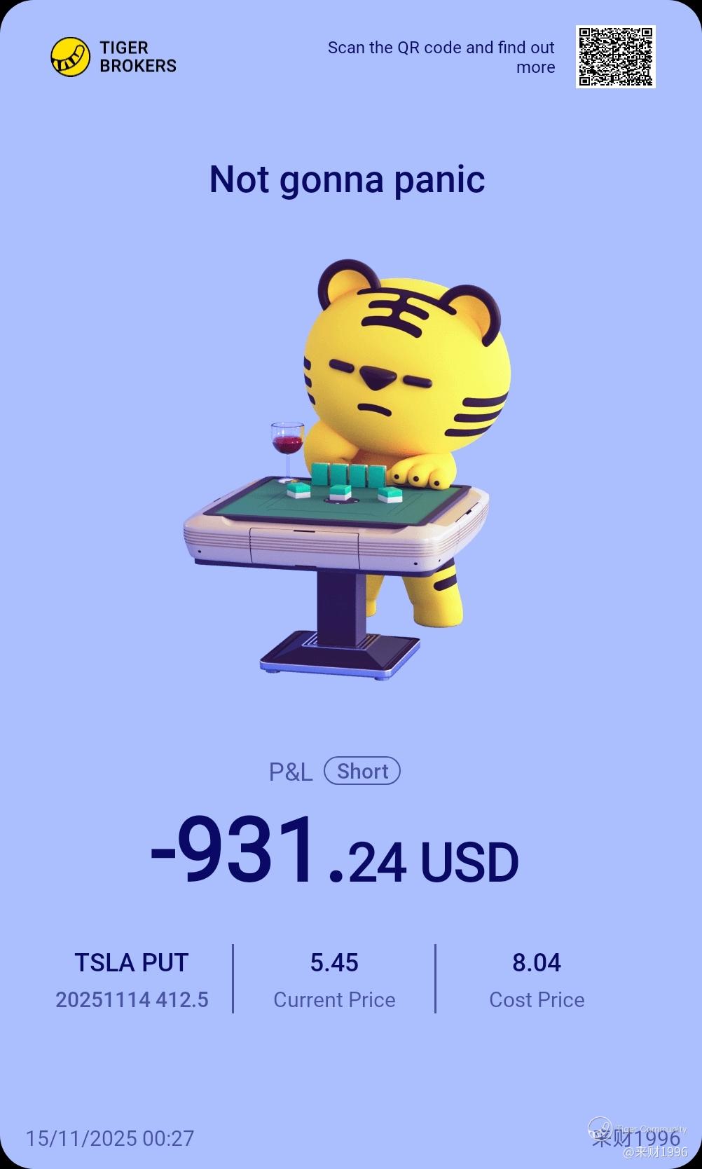 $TSLA 20251114 412.5 PUT$ $Tesla Motors(TSLA)$ Traveling through bear and bull market.....