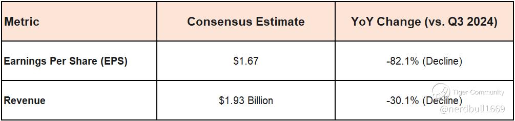 Low Analyst Expectation: The pre-earnings sentiment is largely bearish, with expectations for a sharp year-over-year decline.